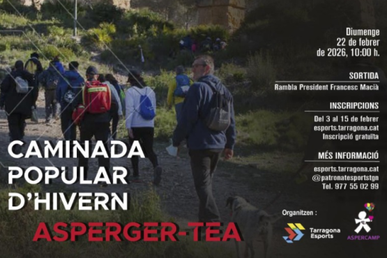 Lace up your sneakers and participate in the Asperger-TEA Popular Winter Walk organized by Tarragona Deportes in collaboration with ASPERCAMP, the Asperger-TEA Association of Camp de Tarragona, with the aim of raising awareness of Asperger-TEA syndrome, and promoting its social awareness.